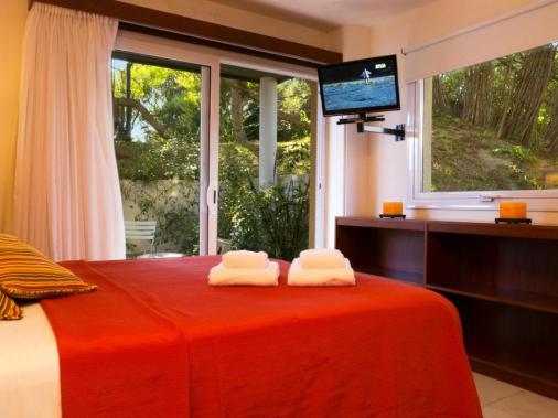 Habitación para 1 ó 2 personas. Con baño completo. Ubicada en planta baja, con ventanal al frente y salida directa al desayunador. diferencia de los Monoambiente, esta habitación no posee cocina.
