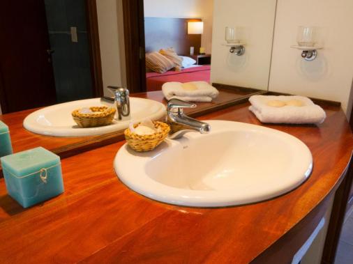 Unidad de tres ambientes para grupos familiares mas grandes. Poseen 2 habitaciones y dos baños completos. Estas unidades pueden tener dos habitaciones matrimoniales, o una habitación matrimonial y una con dos camas individuales. Se encuentran en primer piso y poseen tres balcones. Uno hacia la piscina, y dos hacia el frente en cada dormitorio.